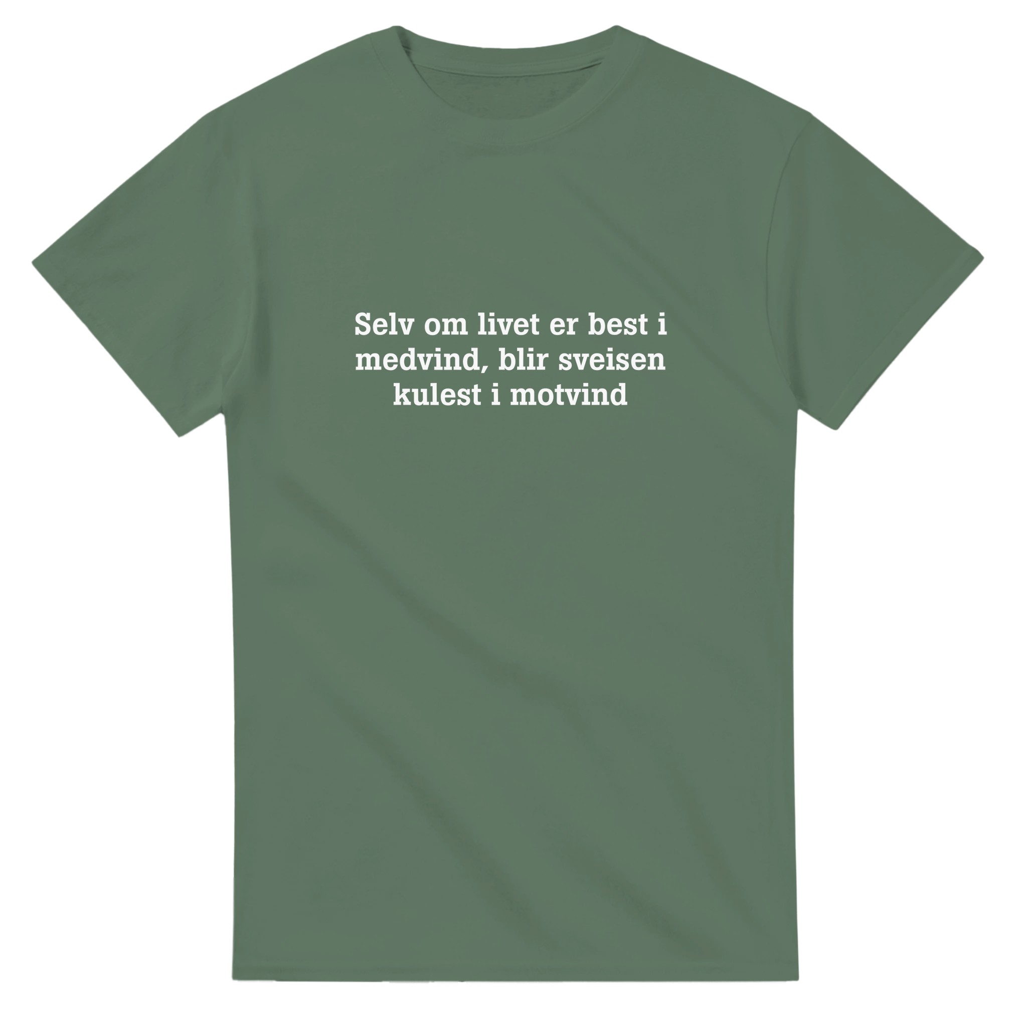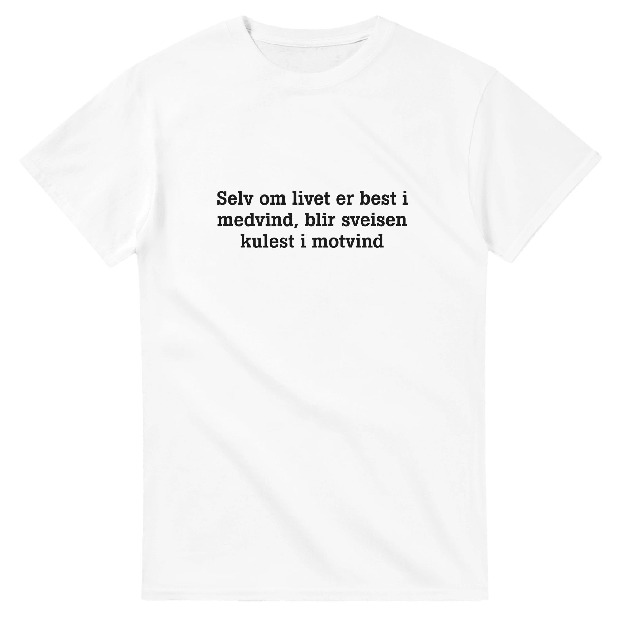 T-skjorte med tekst: Selv om livet er best i medvind, blir sveisen kulest i motvind.